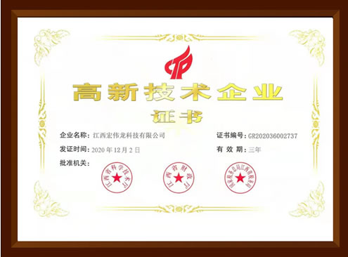 熱烈慶祝江西宏偉龍科技有限公司獲得國家高新技術(shù)企業(yè)稱號